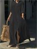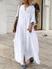 Descoperă eleganța fără efort cu această rochie lungă, concepută cu un guler clasic de cămașă și un detaliu practic de buzunar.. Realizat dintr-un amestec respirabil de bumbac și in, oferă o opțiune confortabilă, dar elegantă pentru orice ocazie casual.. Croiala sa pentru mărimi mari asigură o siluetă flatantă, făcându-l o piesă versatilă pentru garderoba ta.. Perfect pentru a îmbrățișa o eleganță relaxată în toate anotimpurile.
