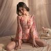 Charming Kimono-Style Lingerie Three-Piece Set: Cute Japanese Print Sleepwear Bathrobe