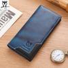 Portofel Lung Bifold Retro pentru Bărbați din Piele Naturală de Vacă Captain - Ceară de Ulei, Portmoneu pentru Monede de Capacitate Mare