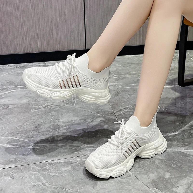 Breathable mesh flying Weaver girl style sports shoes, new summer versatile casual lace-up thick-soled anti-slip dad shoes