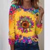 Spring and Autumn Trendy Round Neck 3D Flower Printed Top Colorful Loose Long Sleeve T-shirt