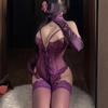 Body seducător din dantelă mov cu sârmă, set de lenjerie