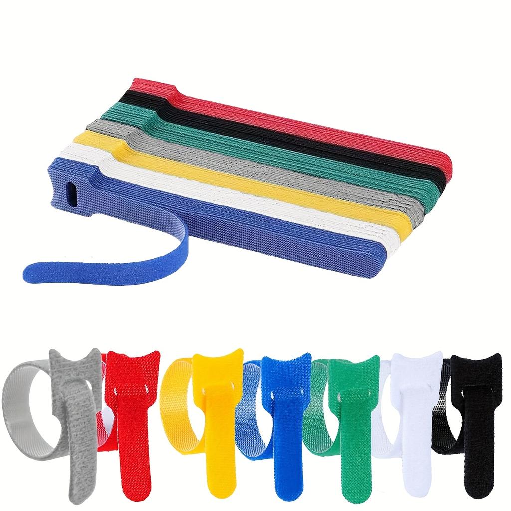 70 buc. Legături de cablu cu scai de culoare mixtă - Organizator de cabluri din material durabil pentru casă și birou, design vibrant în dungi, fixare sigură cu buclă