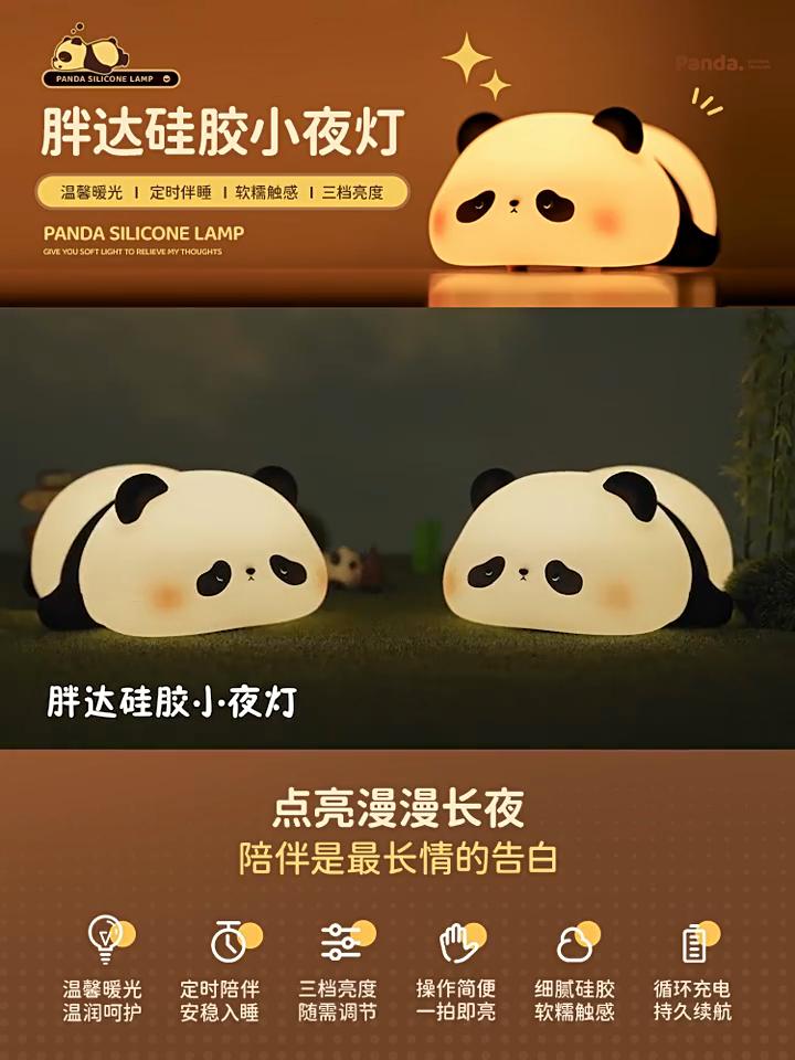 LED Night Light Cute Panda Mushroom Halloween Ghost Silicone Light USB Charging Timing Bedside Decoration Children Baby Night Light Birthday Gift