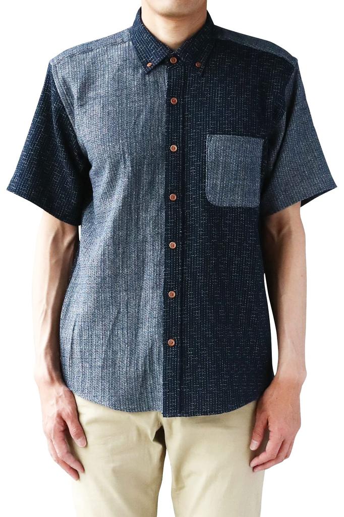 Watanosato Kurume Chijimi weave x weave shirt with pocket Made in Japan Day Switching pear-textured short-sleeved button-down Father's (Size