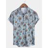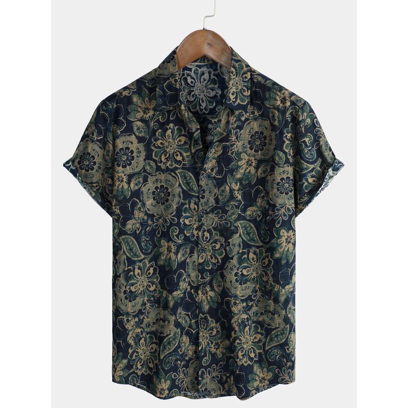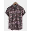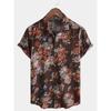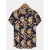 Retro floral print short sleeved shirt for men's casual lapel single breasted shirt 3D printed polyester short sleeved shirt