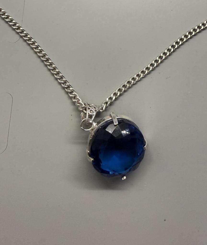 Pandantiv Topaz Albastru Natural Formă Rotundă 100 Certificat Argint Sterling 925 Pietre prețioase my-393-k