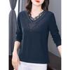 Long-sleeved T-shirt Women's Spring Autumn and Winter Lace Mother V-neck Blouse Large Size Inner Bottoming Shirt