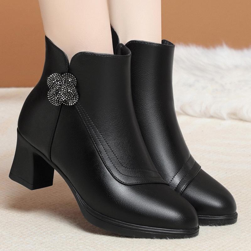 Pantofi de Bumbac pentru Femei, Călduroși, de Catifea, la Modă, Botine Scurte, cu Vârf Ascuțit, Toc Pătrat, Tocuri Înalte, Noi, cu Fermoar, Confortabili, Pantofi de Gleznă