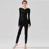 Costum Sport Stil Nou, Pantaloni Sport Strâmți Casual pentru Alergare Fitness, Costum cu Mânecă Lungă Fals din Două Piese cu Uscare Rapidă Nud pentru Femei
