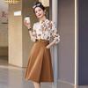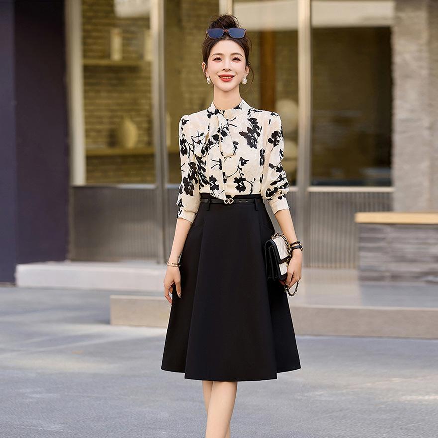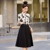 Ribbon collar print splicing fake two-piece dress women's spring new temperament formal settings professional skirt