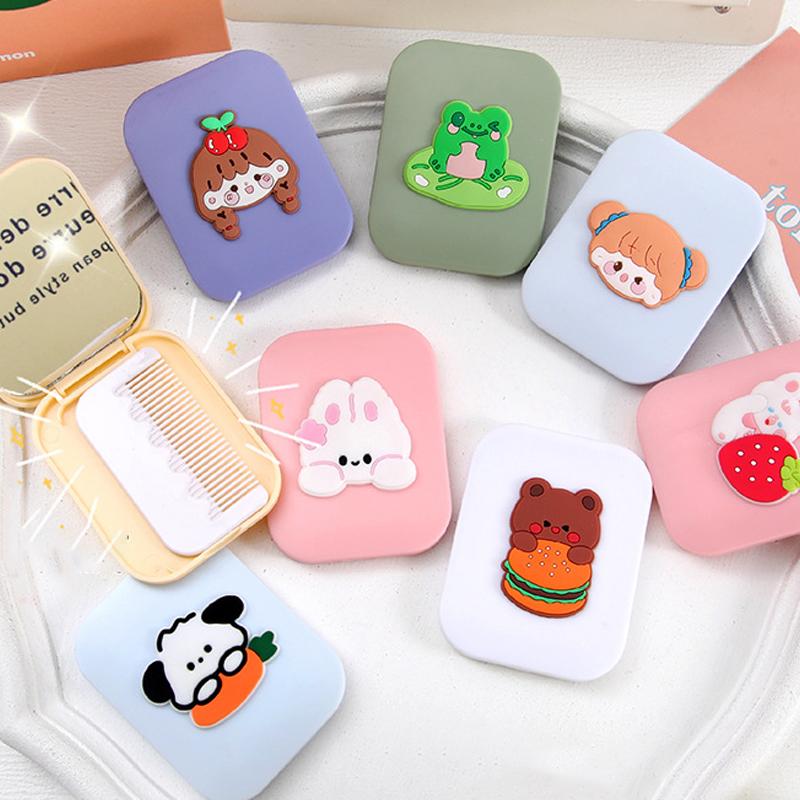 Perie de păr portabilă de buzunar cu desen animat, mică pentru călătorie, masaj, mini oglindă de buzunar, pieptene pliabil pentru femei, fete, instrumente de styling drăguțe