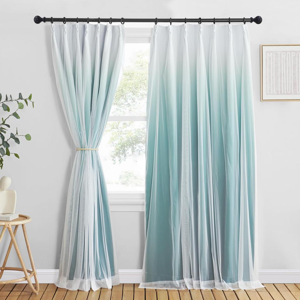 NICETOWN Blackout Lace Perfect for Bedrooms and 100cm Wide x 200cm Set of Dark Green Curtains, Divider, Double-Layer Curtains, Stylish, Romantic,