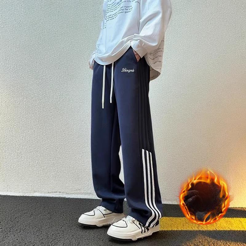 Casual Sports Pants for Men's Spring and Autumn New Striped Plus Velvet Wide-leg Pants American Draped Versatile Trousers