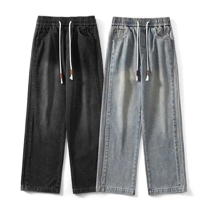 American Jeans Men's Hong Kong Style Retro Old Loose Straight Pants Spring and Autumn High Street Drooping Trousers