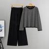 Spring Casual Fashion Suit Fashionable Striped Knitted Top Wide Leg Pants Two Piece Set for Women