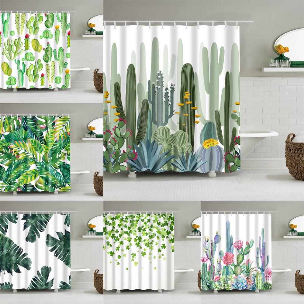 Plant Stripes Shower Curtain Bathroom Waterproof Polyester Shower Curtains for Bathroom Flower Print Bath Curtain with Hooks