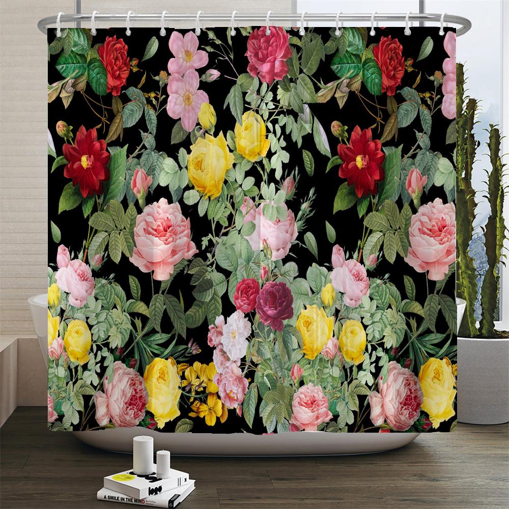 European Blooming Flowers Shower Curtain Rural style Home Decoration 180x200cm Waterproof Fabric Bathroom Curtains With Hooks