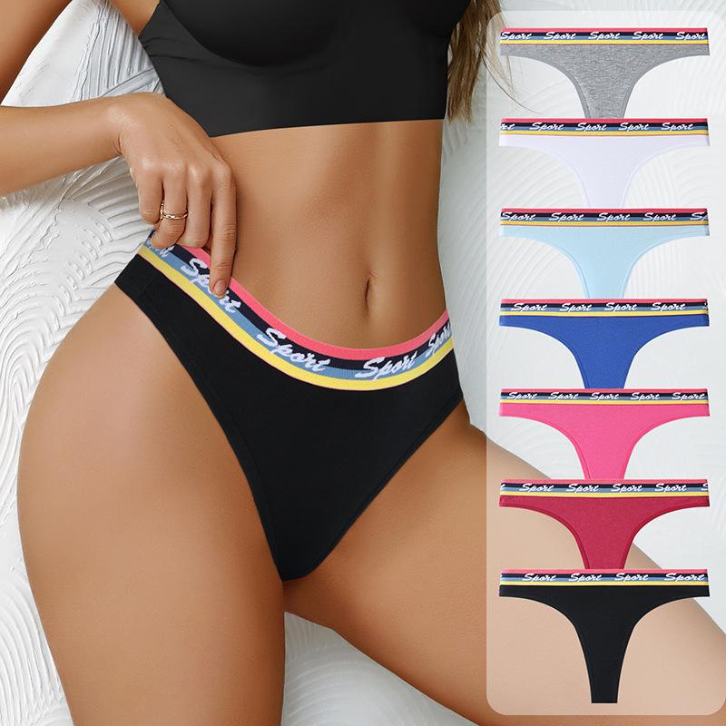 Fitness Exercise Solid Color Letter Printed Panties Breathable and Comfortable Triangle Women's Thong Panties