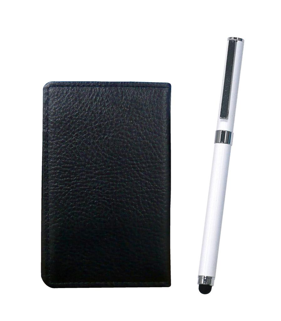 Black grained cowhide business card holder with smartphone touch and metal cap ballpoint pen extra set (white) MEIB-QSJW700-W