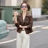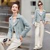 Fashion design textured leather jacket women's coat spring and autumn new lapel top locomotive suit short leather jacket tide