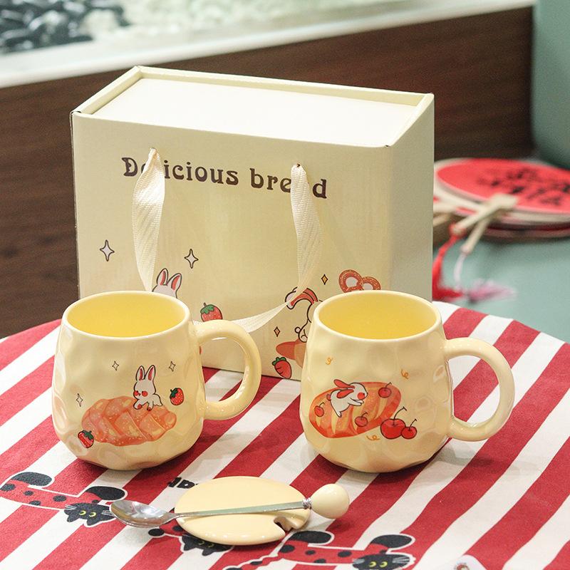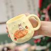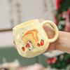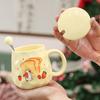 Cream Style Ceramic Mug High Value Drinking Water Cup Pinch Pattern Cup with Lid Spoon Coffee Cup Cute Event Gift Cup