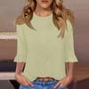 Top casual de damă cu mâneci 3/4, de vară, cu gât rotund, cu mâneci bufante