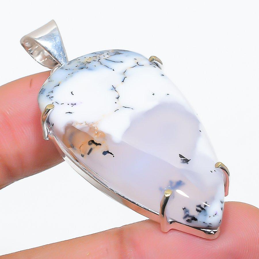 Dendrite Opal Gemstone 925 Solid Sterling Silver Jewelry Pendant 2.21" SU-10270