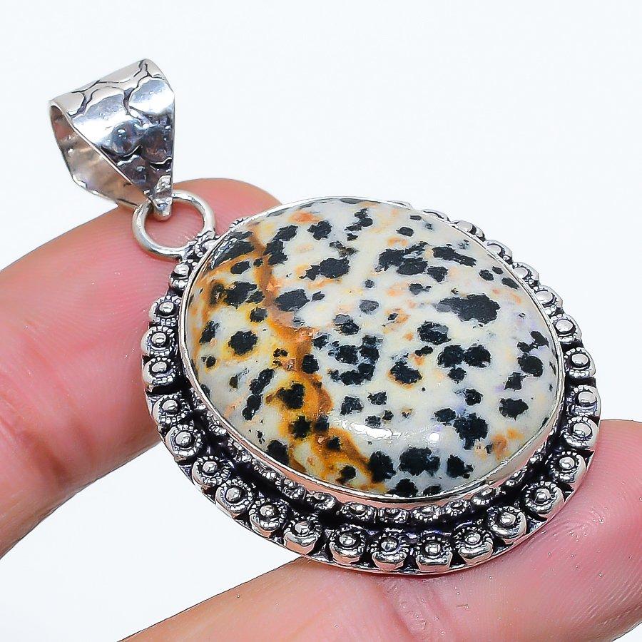 Dalmation Jasper Gemstone 925 Sterling Silver Jewelry Pendant 1.89" SU-10686