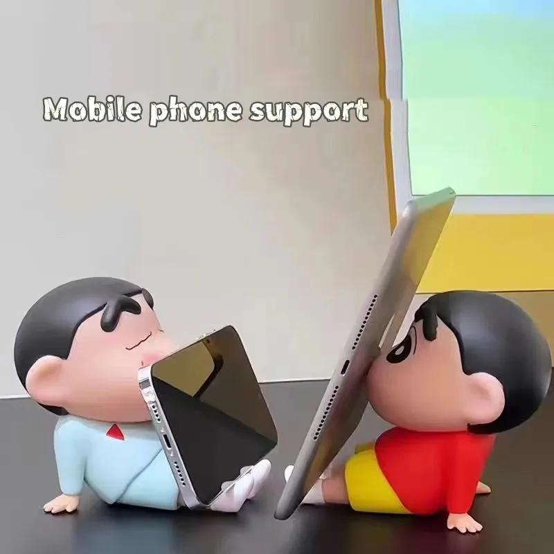 Shin-Chan Anime Phone Holder Cute Watching TV Style Stand Cartoon Ornament Kawaii Desk Decoration Doll Gift for Birthday Office
