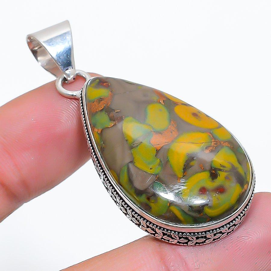 Bamboo Jasper Gemstone Handmade 925 Sterling Silver Jewelry Pendant 2.01" SU-10738