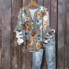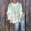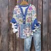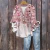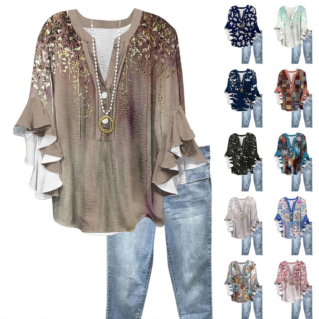 Modă Femei Casual Buton Gât V Mânecă Șapte Bluză Top Imprimeu Vintage