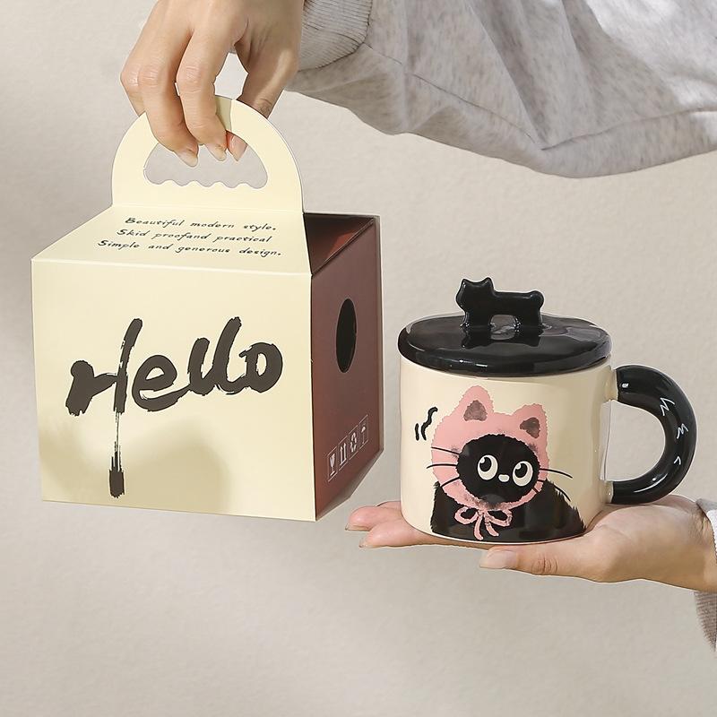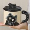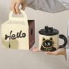 Cute Hat Cat Mug with Lid Cute Cartoon Animal Ceramic Cup Office Home Coffee Water Cup