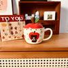 High value Apple Bear Cup with Lid Mug Christmas Ceramic Cup Cartoon Cute Coffee Cup Souvenir
