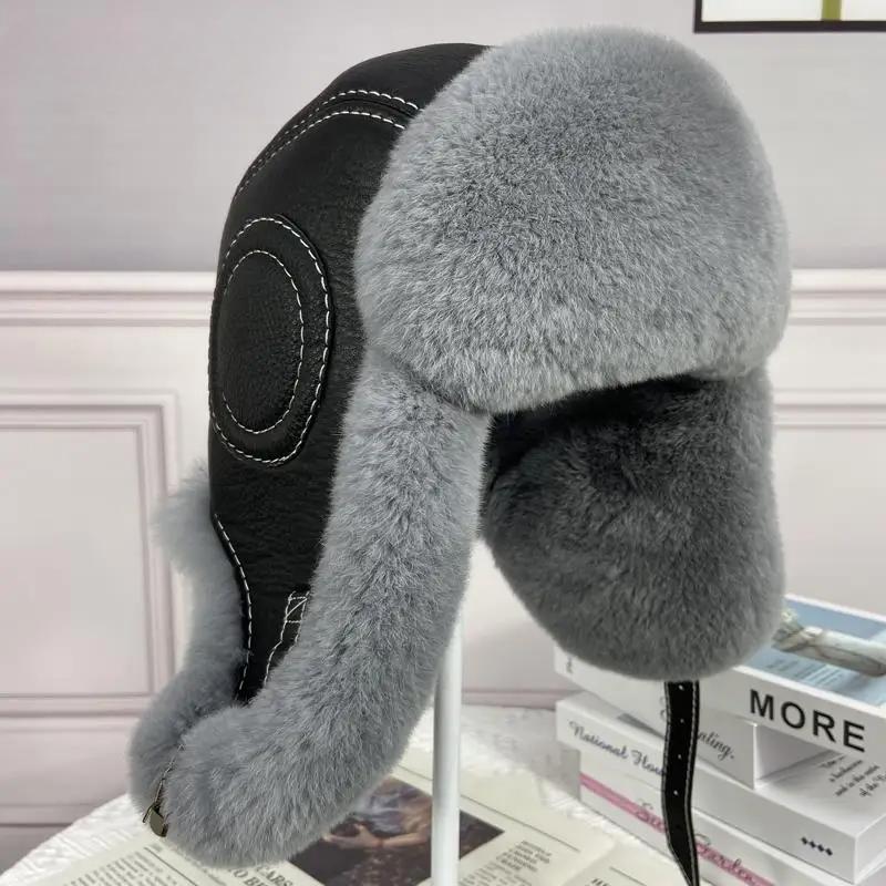 Căciulă Bomber din Blană de Iepure Bărbați Iarnă Caldă Groasă Căciulă Trapper Caldă cu Urechi Piele Naturală Curea Ajustabilă Căciuli de Zăpadă