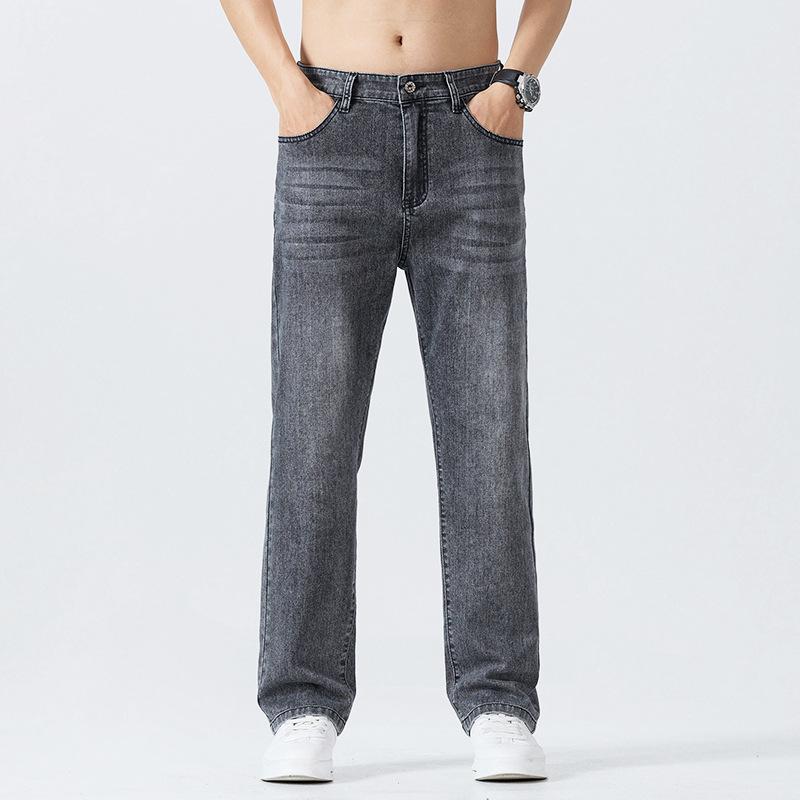 New Jeans Men's Spring and Summer Cotton Elastic Loose Straight Cotton Elastic Slimming Pants