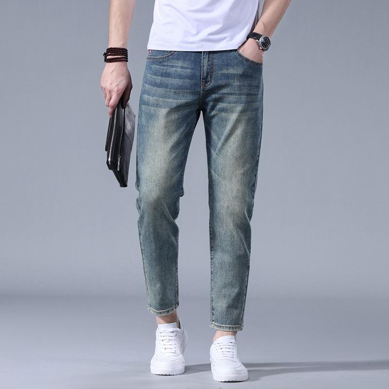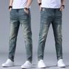 Spring and Summer Thin Men's Jeans Stretchy Slim Small Straight Trousers