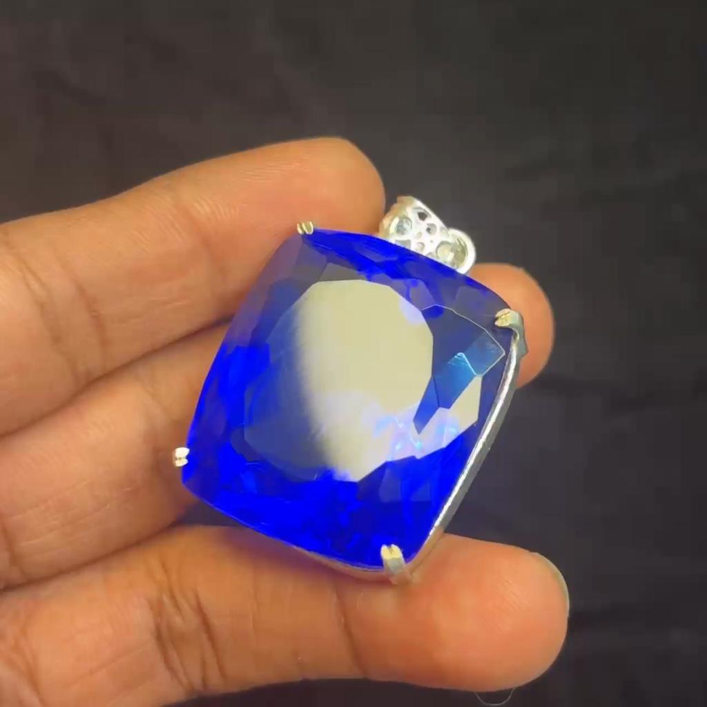 Blue Topaz Pendant Cushion 925 Sterling Silver Natural 135.3 Ct Gems CERTIFIED my-413-k