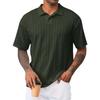 Men's Summer Solid Color Knitted Textured Button Collar Loose Short Sleeve Top