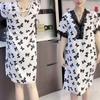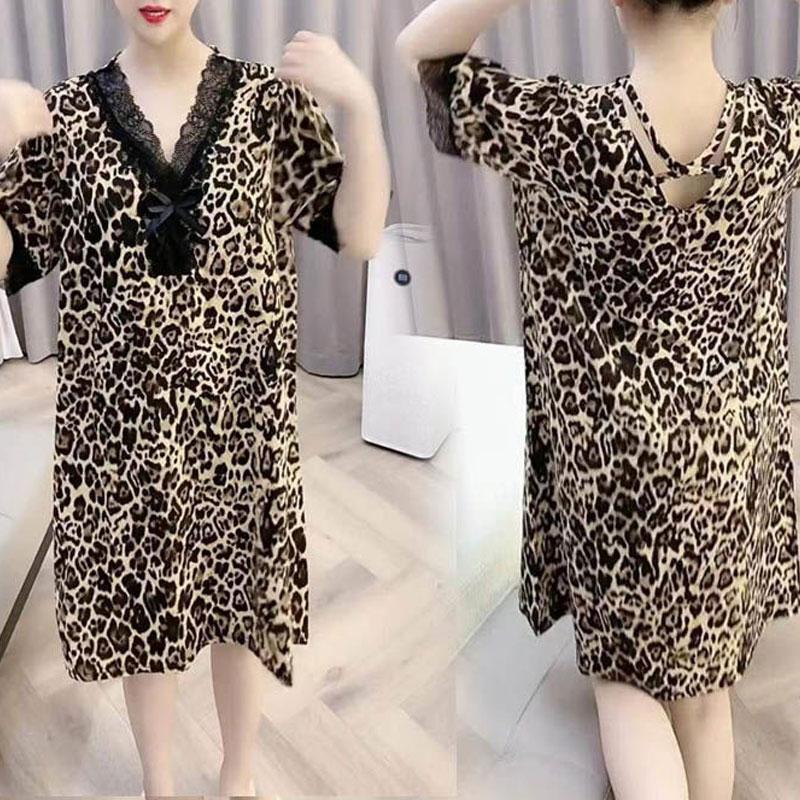 Women's Clothing Sexy Leopard Elegant V-Neck Lace Spliced Midi Dress Summer Straight Stylish Bow Casual All-match Loose Dresses
