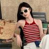 Black Striped Knitted Camisole Tank Top Women's Spring Summer Inner Wear Hot Girl Sexy Backless Outerwear Short Base Layer Top