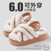 Autumn and winter velvet cross belt Korean version open-toed fluffy cool slippers women's 2025 casual thick-bottomed fairy cotton slippers
