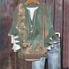 Modă Femei Casual Buton Gât V Mânecă Șapte Bluză Top Imprimeu Vintage