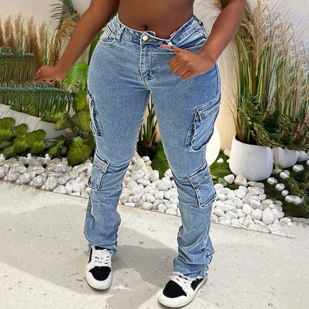 Women's Solid Color Casual Fashion Pants, Solid Color Versatile Slim Fit Jeans