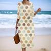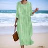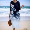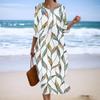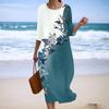 Rochie largă de damă la modă, cu gât rotund imprimat și mâneci trei sferturi