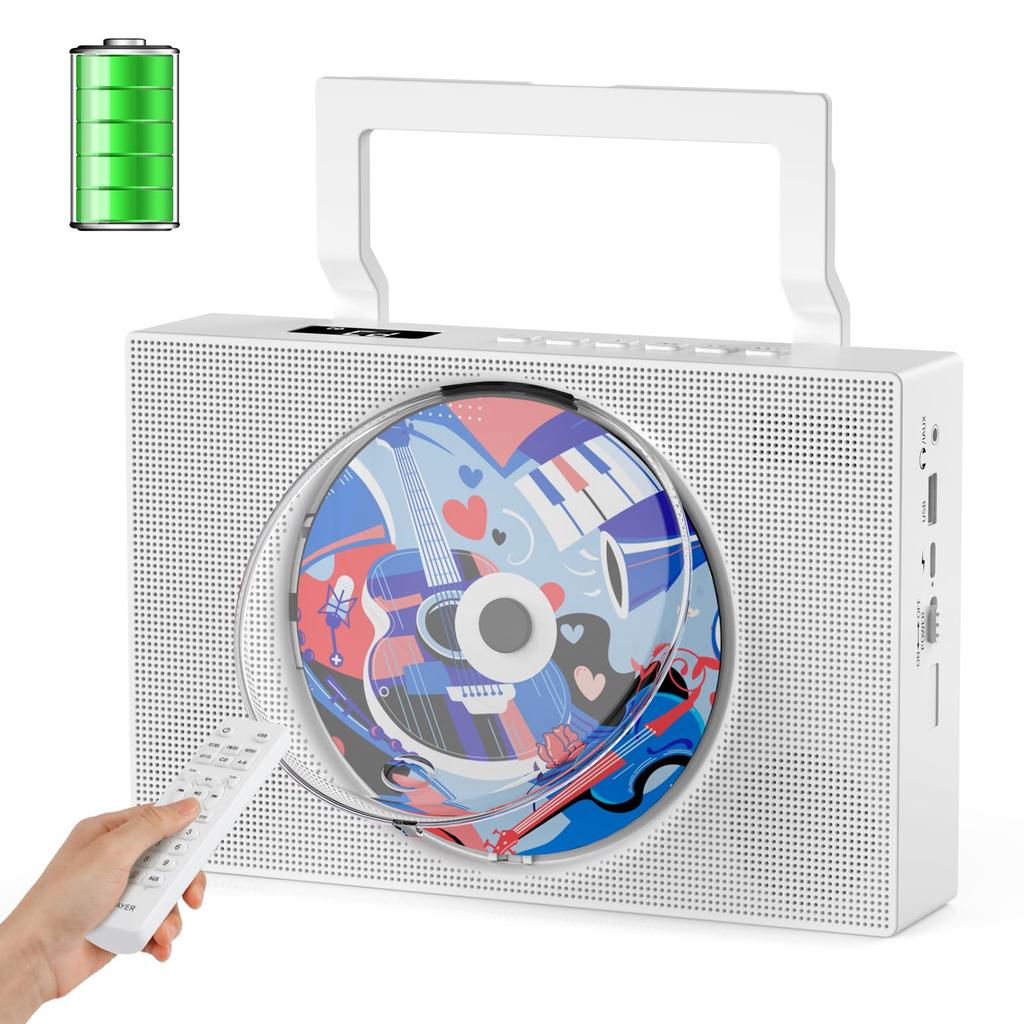 Gueray Portable CD Player, Tabletop, Bluetooth Compatible, Rechargeable, Built-in Speaker, USB PlaybackAUX Input, Widescreen FM Radio, CD Boombox,
