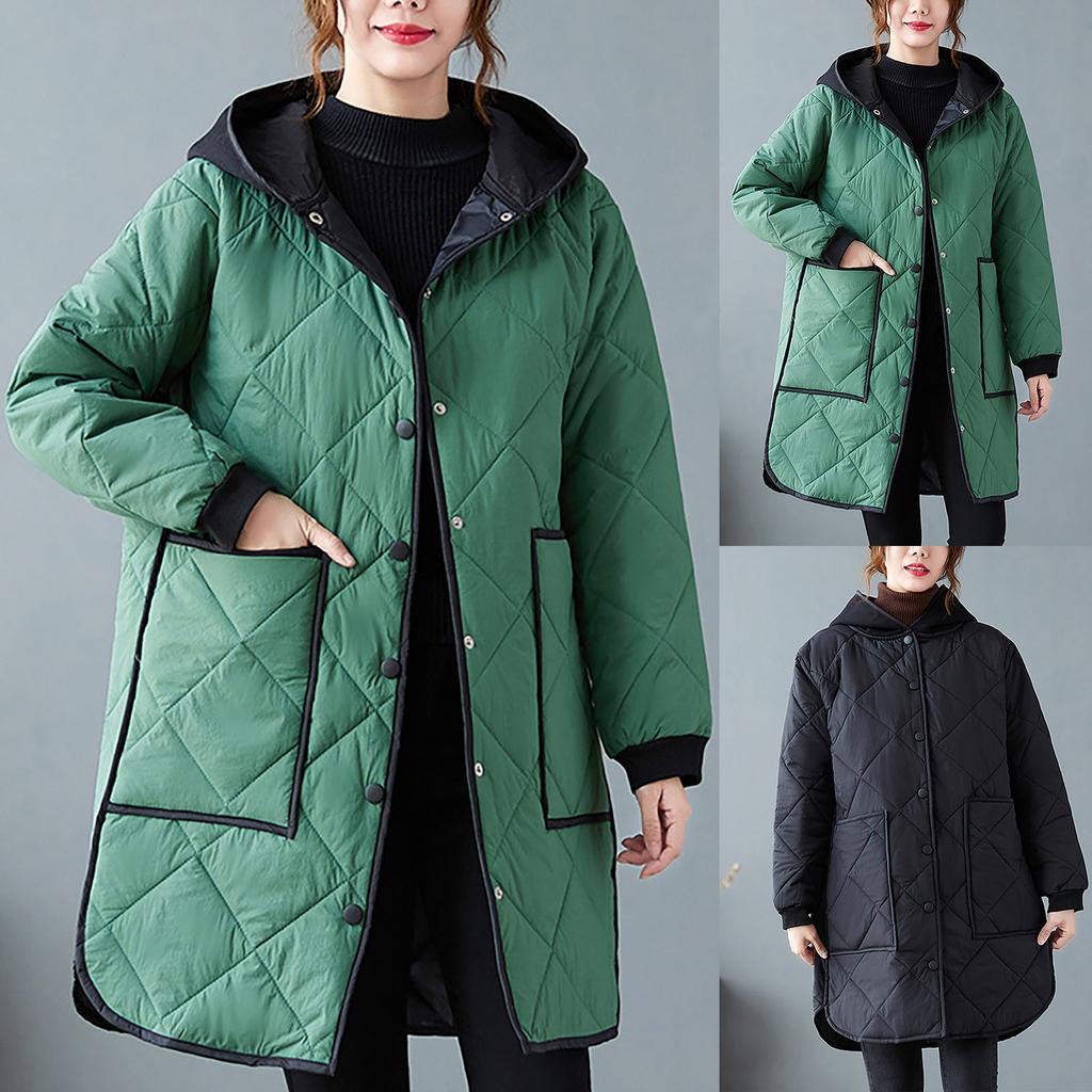 Jachetă de damă de iarnă cu glugă, cu mâneci lungi, de lungime medie, lejeră, din bumbac ușor