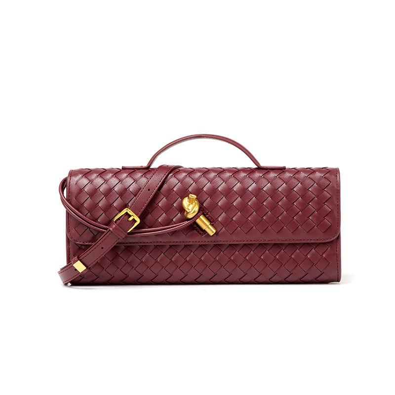 Woven bag, one shoulder baguette bag, niche high-end horizontal style, hand-held dinner bag, crossbody versatile bag, fashionable and exquisite
