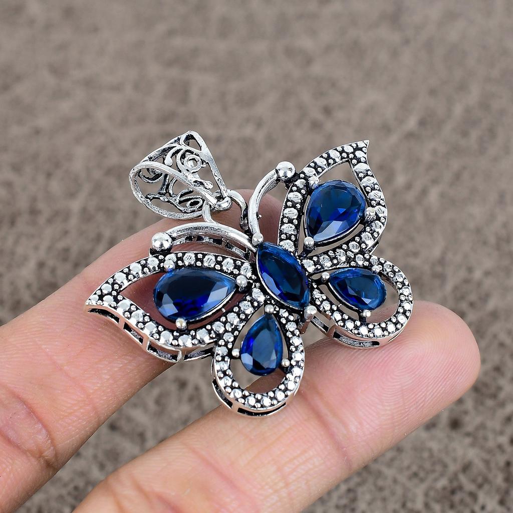 Blue Topaz Gemstone Handmade 925 Sterling Silver Jewelry Pendant 1.65" KKG-90