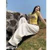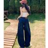 Yellow Cargo Jeans Women High Waist Loose Wide Leg Pants